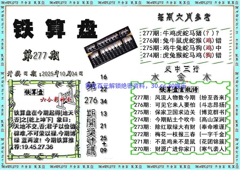 270期 | 1.2.3 | 0.2.4.5.9 | 开:羊35中 |